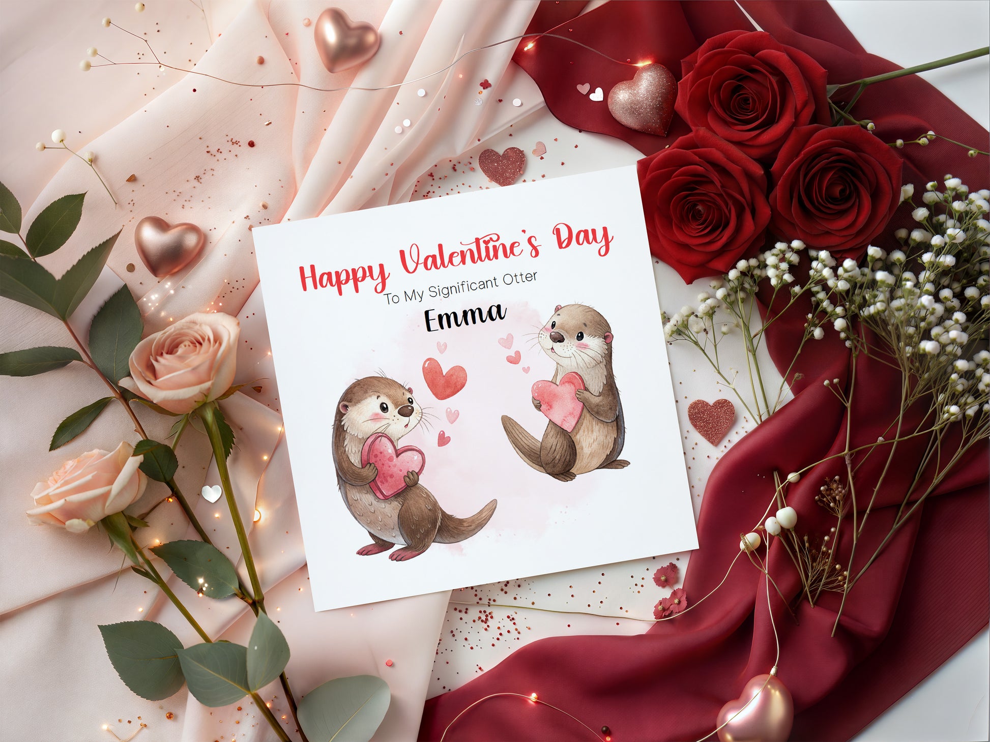 Personalised Valentineās Day Card with Cute Otter Design with Custom Name - for Loved Ones, Wife, Husband, Boyfriend, Girlfriend - Cute Pun Love Card for Him or for Her - Red Envelope Included