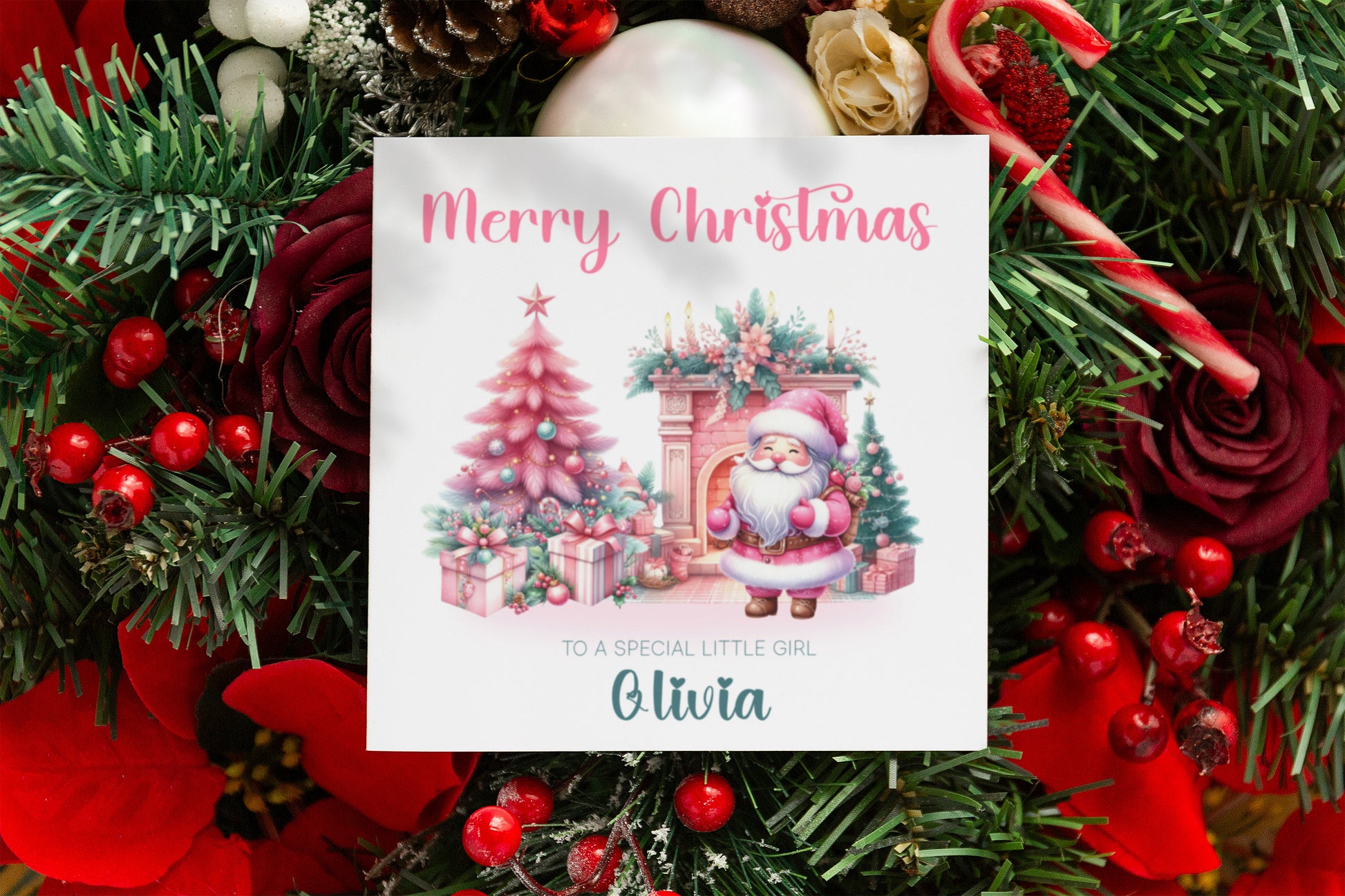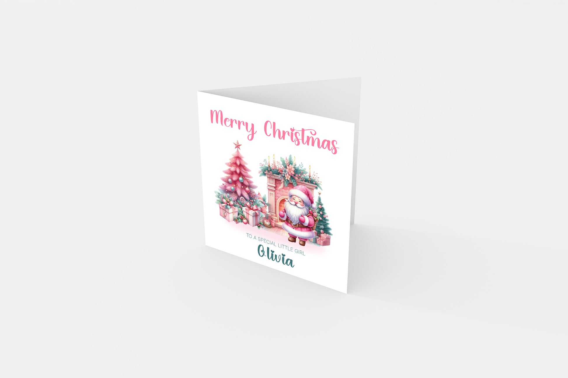 🎄 Make her Christmas extra magical with this adorable personalised Christmas card for a special little girl. Featuring a charming Santa Claus, pink Christmas tree, and festive gifts, this beautifully illustrated card adds a touch of sweetness to the holiday season.