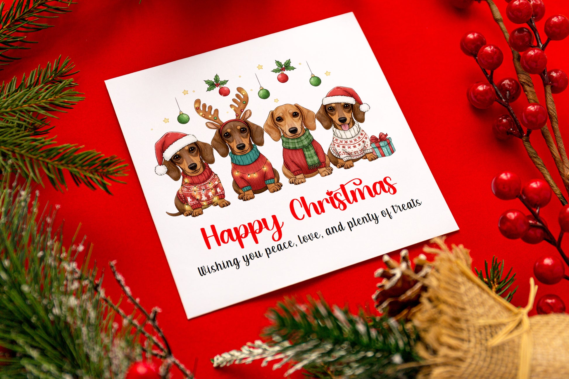 Cute Sausage Dogs Christmas Card β Funny Dachshund Xmas Card for Dog Lovers,Friends, Family, Pet Owners and for Him, Her, Kids, Co-Workers β Red Envelope Included