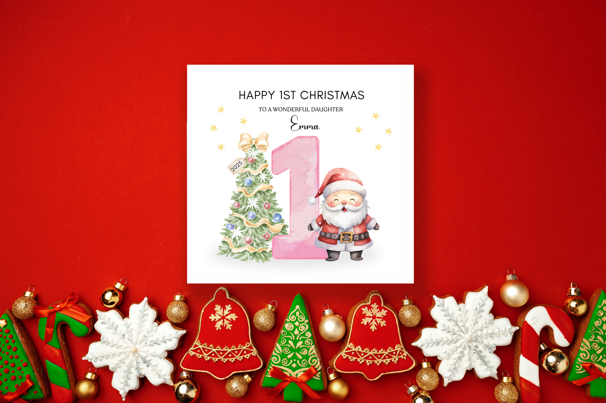 🎄Make your baby's first Christmas unforgettable with this personalised 1st Christmas card, perfect for celebrating a milestone that only happens once. Whether you're gifting it to a daughter, granddaughter, niece or any special little one, this card can be fully customised with a personal message and the baby’s name to make it truly unique.