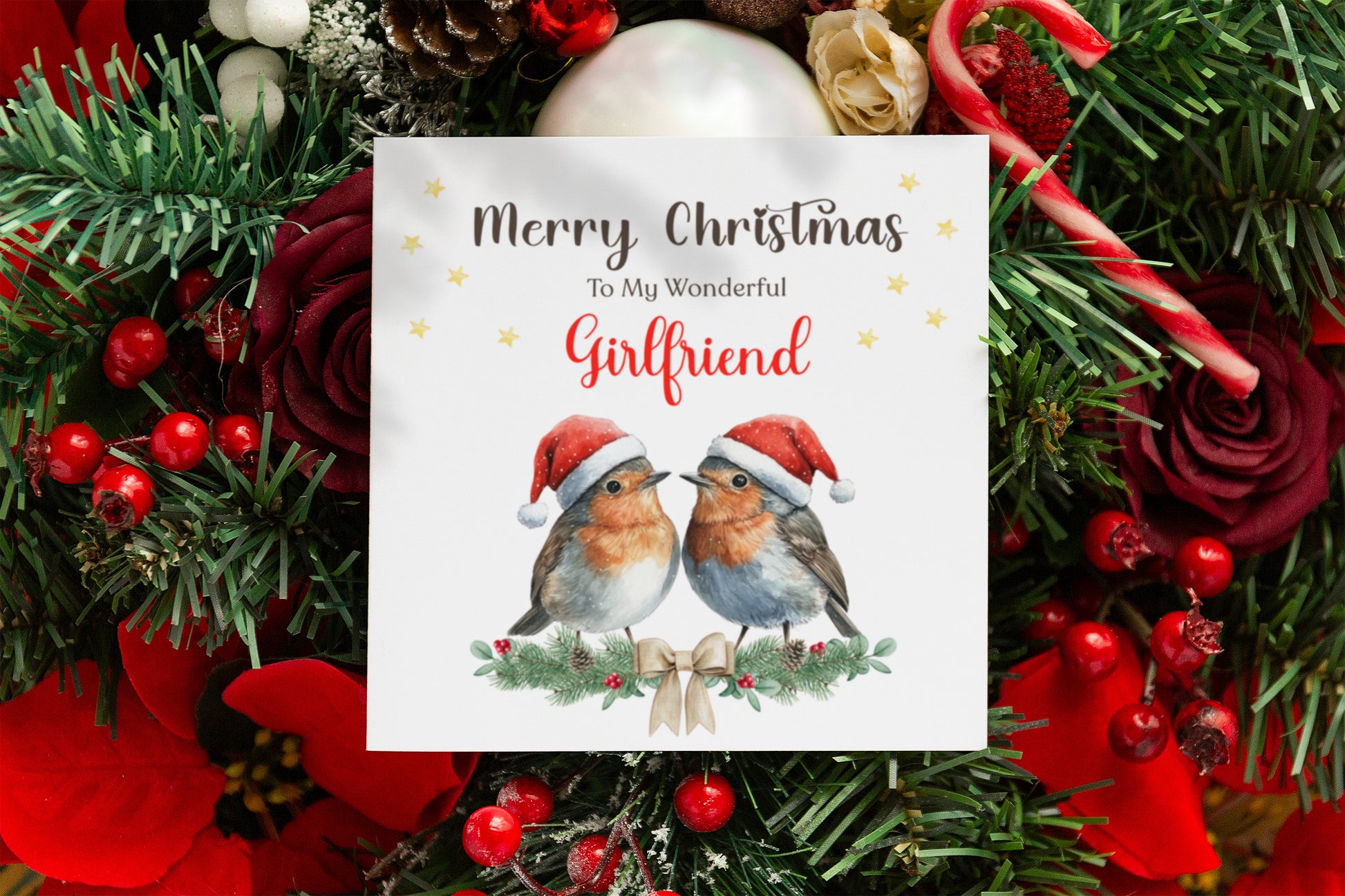 Robin Couple Christmas Card – 6 Options Available: Boyfriend, Girlfriend, Husband, Wife, Fiancé & Fiancée – Love Birds Merry Christmas Card - Red Envelope Included