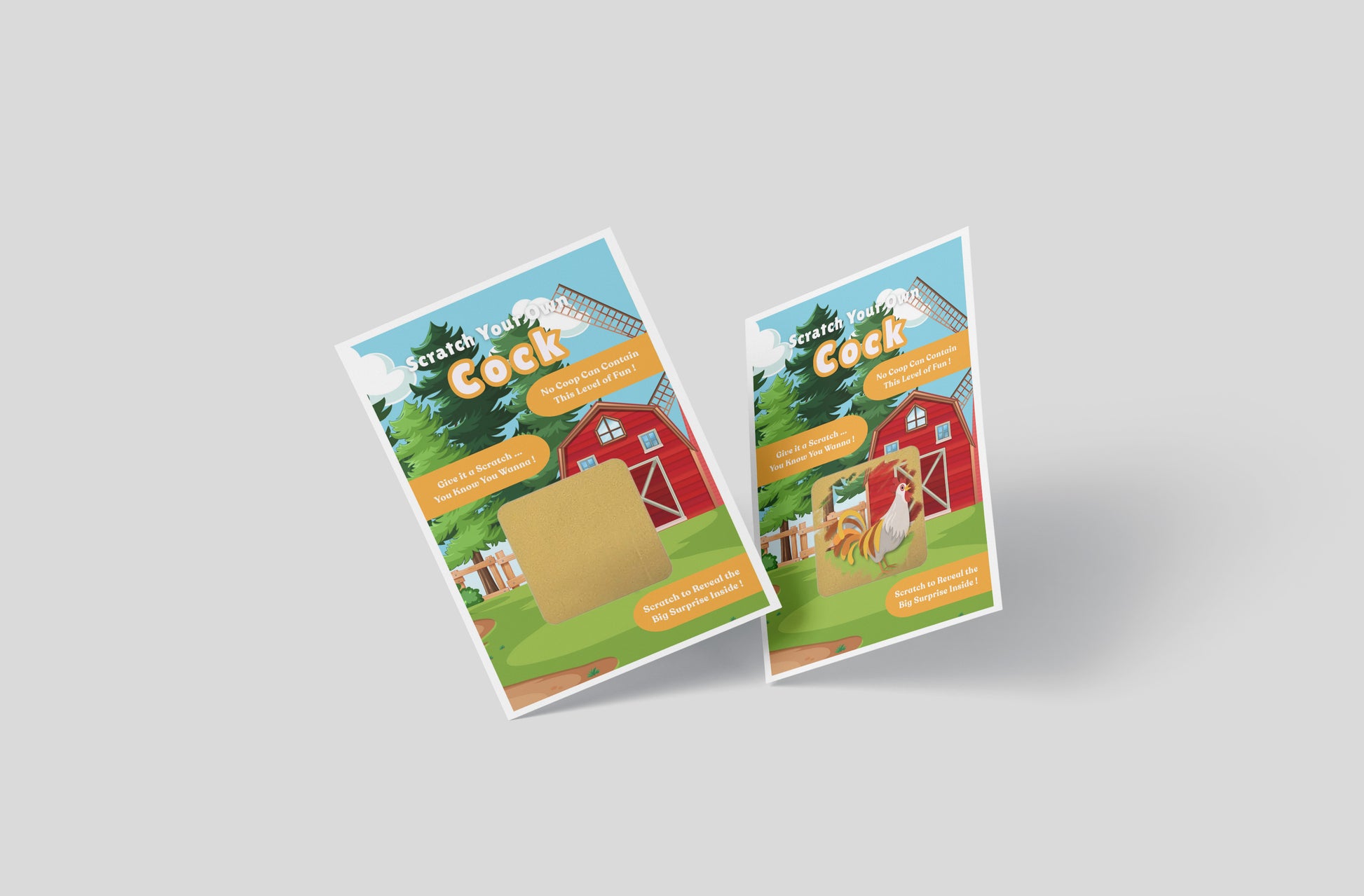 Looking for a laugh-out-loud gift that no one will see coming? Introducing the "Scratch Your Own Cock" Funny Greeting Card – the perfect combination of cheeky humor and surprise. Featuring a colorful farm scene and a scratch-off rooster (yep, a cock!), this novelty card brings barnyard laughs with a playful adult twist.