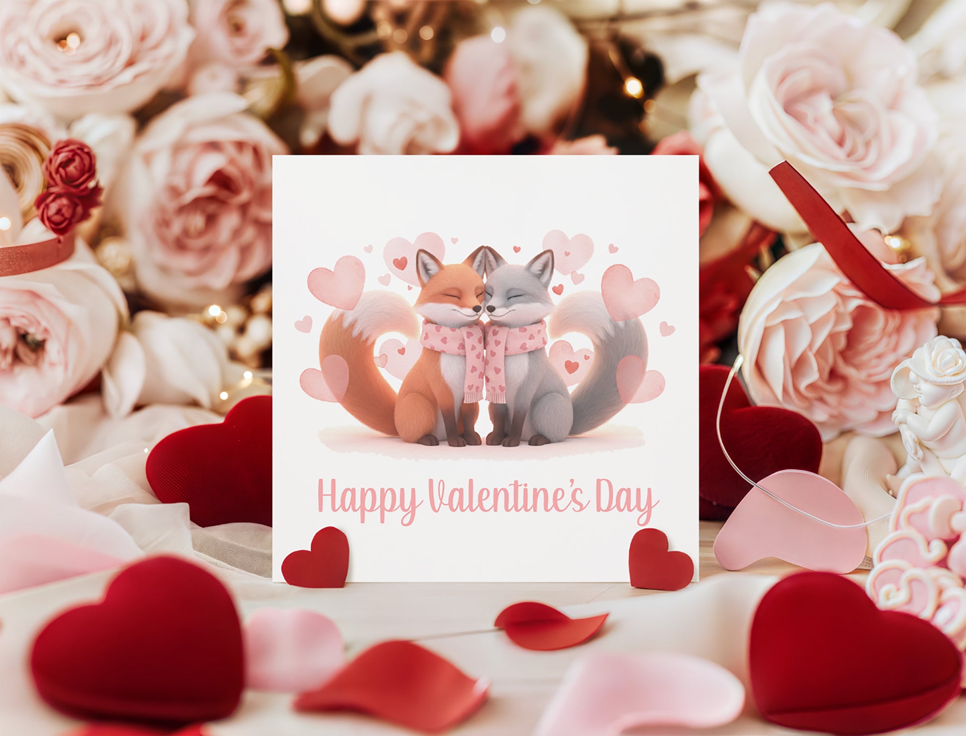 Valentine’s Day Card with Cute Foxs Design –Sweet Romantic Valentine’s card for Loved Ones, Wife, Husband, Boyfriend, Girlfriend, Fiance, Fiancee - for Him or Her - Pink Envelope Included