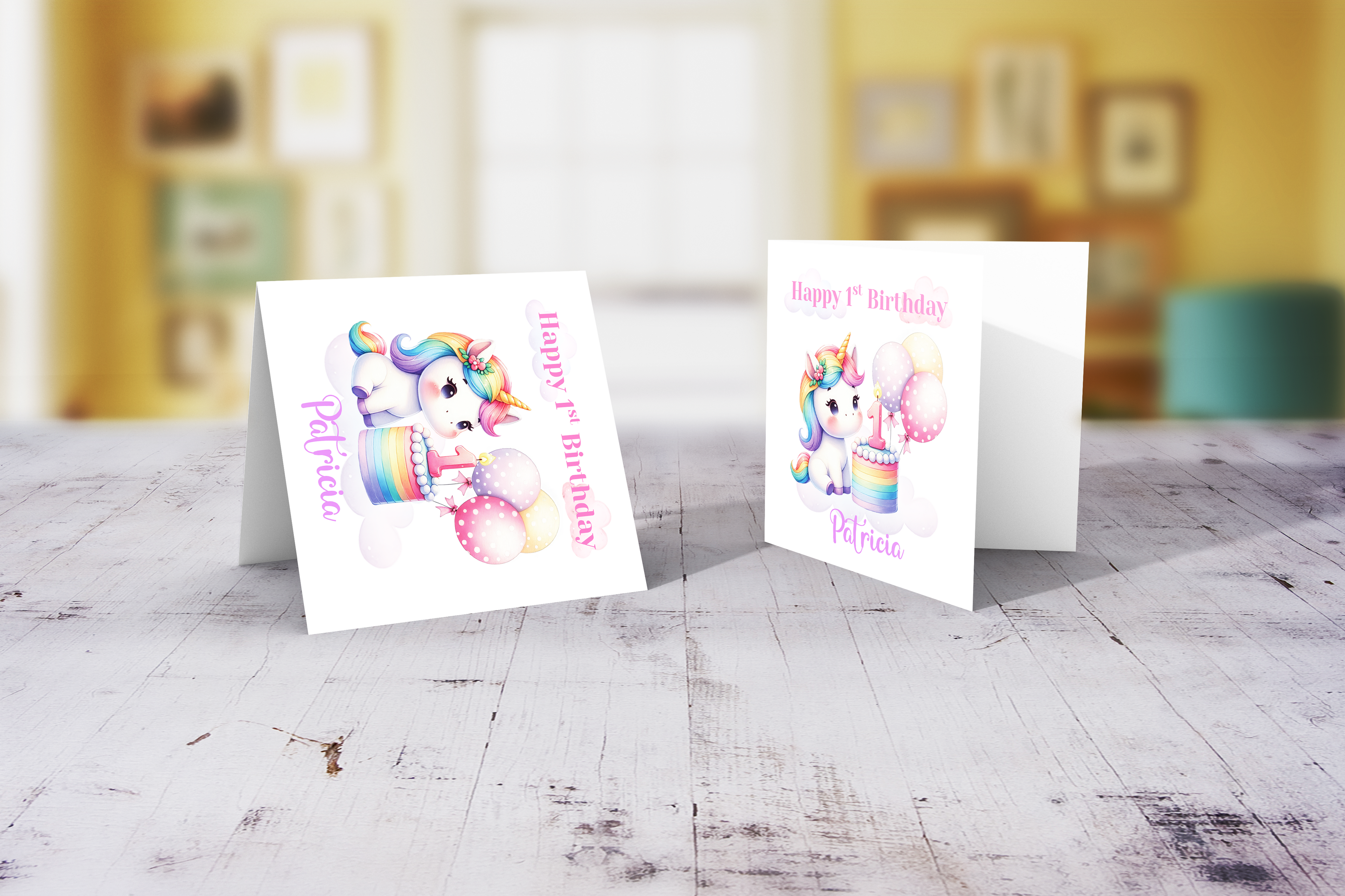 1st Birthday Card for Baby Girl – Colourful Animal Design – Watercolour One Year Old First Birthday Card for Girl, Little One, Daughter, Granddaughter, Niece – Pink Envelope Included